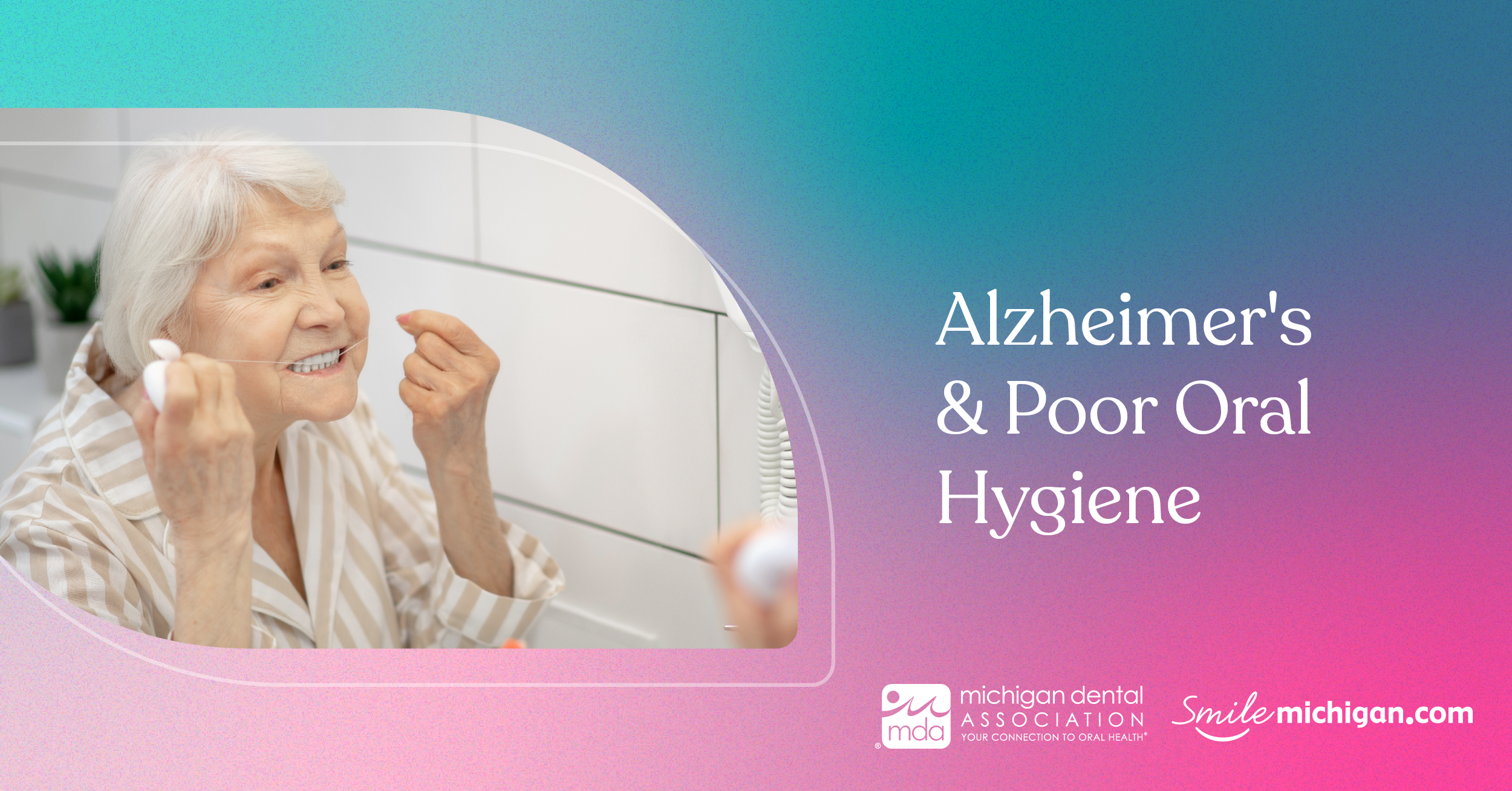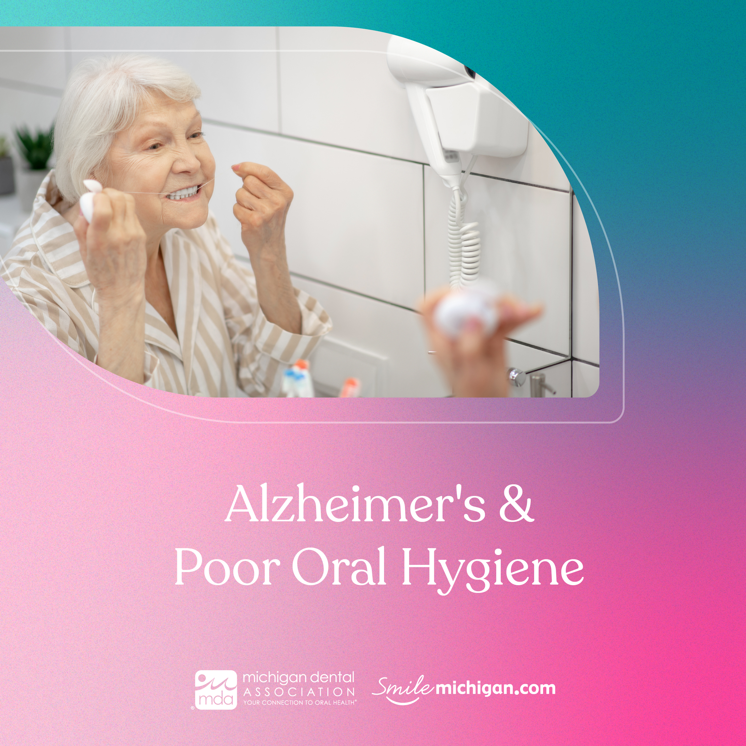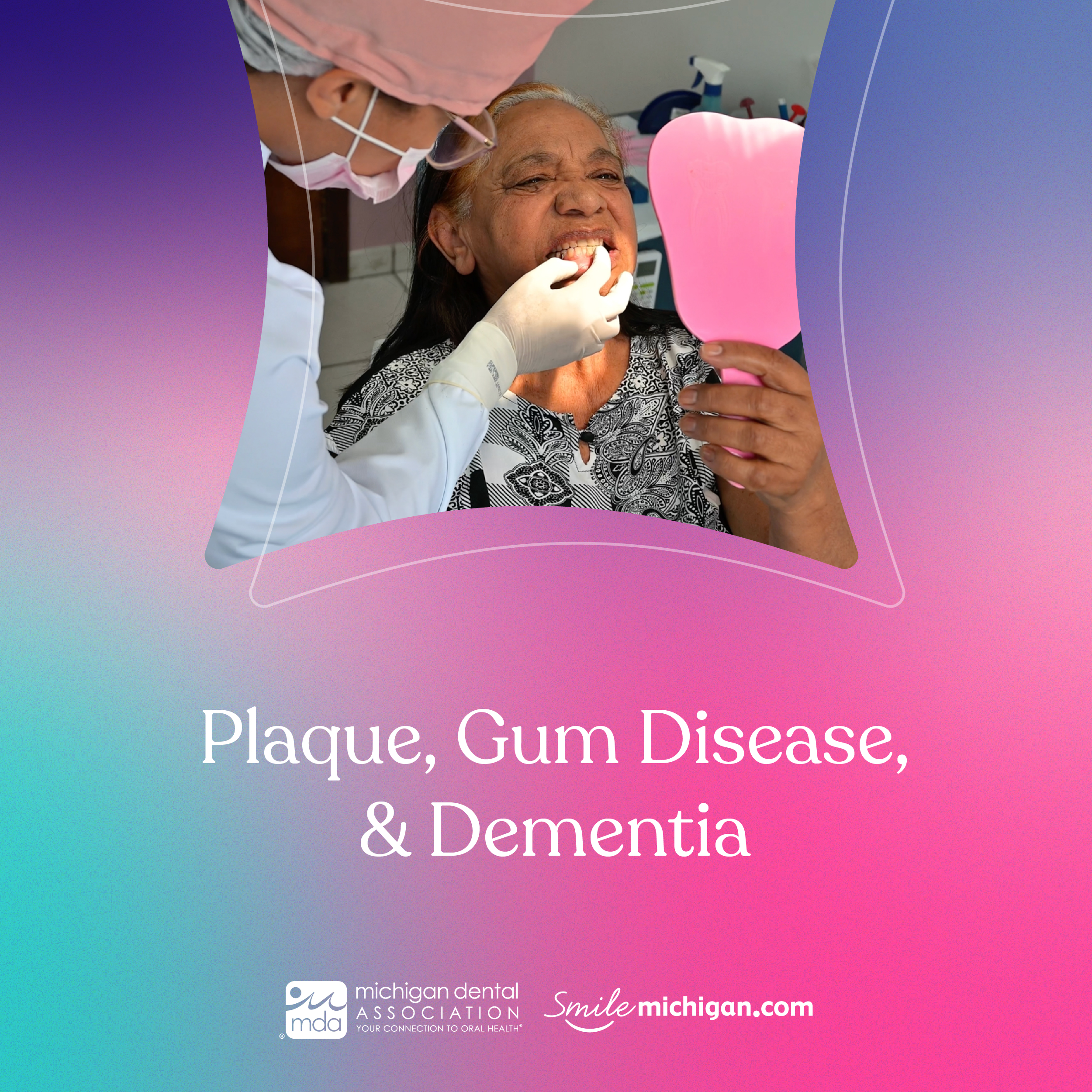 To learn more about Alzheimer’s, dementia, and oral health, read this article by our friends at the Michigan Dental Association. Visit smilemichigan.com/dementia.